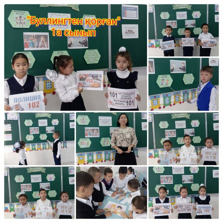 «Жедел қызметтер мен байланыс орталықтарының телефон нөмірлері», "Буллингтен қорған" тақырыптарында «Қауіпсіздік сабақтары»
