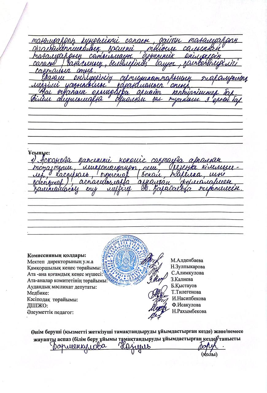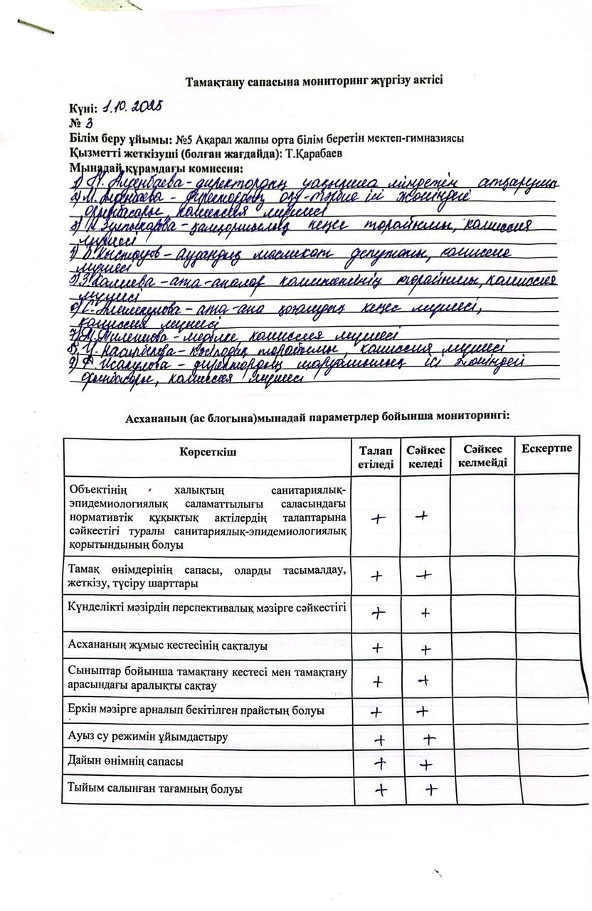 Тамақтану сапасына мониторинг жүргізу актісі » ОШГ№5 Акарал