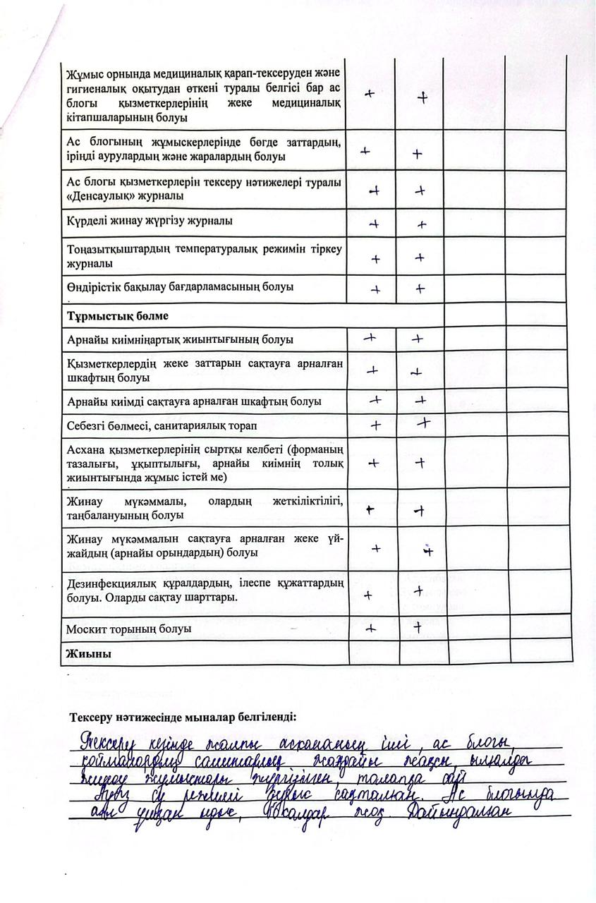 » » » Тамақтану сапасына мониторинг жүргізу актісі