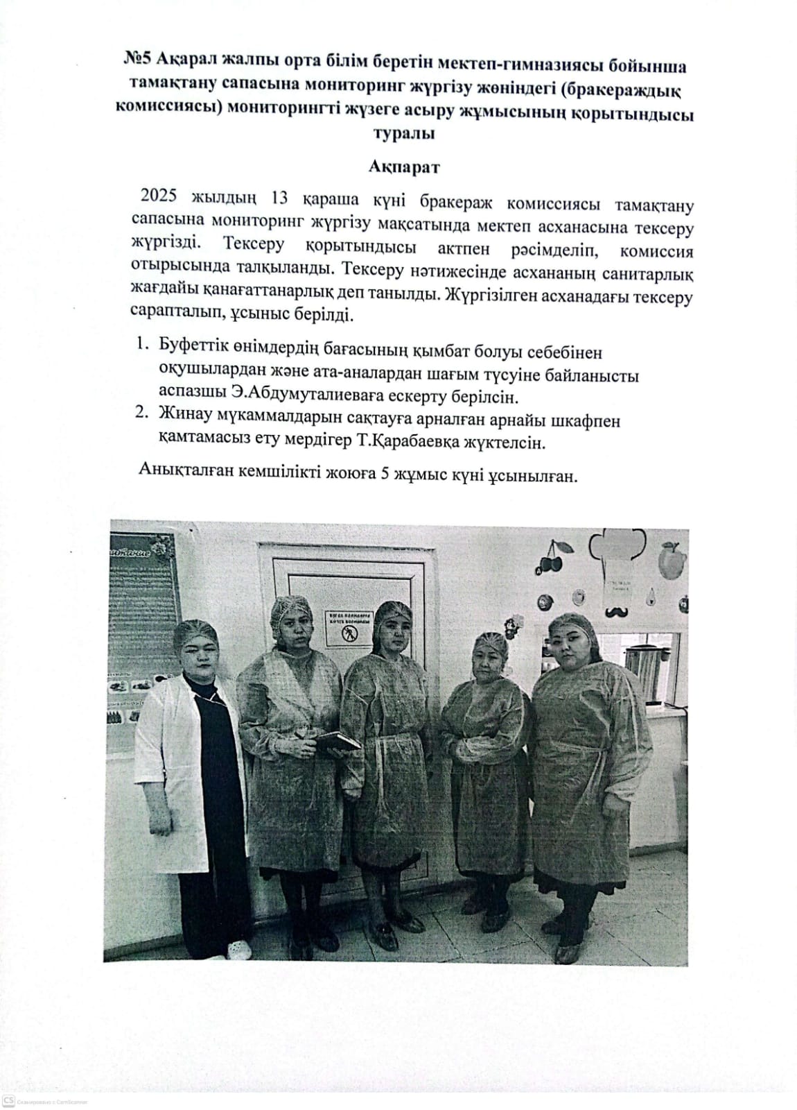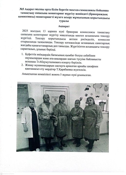 Тамақтану сапасына мониторинг жргізу актісі » ОШГ№5 Акарал